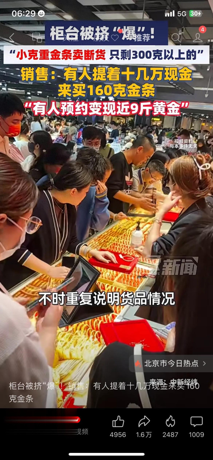 这不是北京独有的场景,上海南京路、广州天河的金店同样上演着“黄金抢购潮”:有人提着十几万现金当场买下160克金条,连价格都没砍;有人预约变现近9斤黄金,光称重就花了十多分钟;甚至有大爷大妈跑遍全城金店,就为了抢一根10克的小金条当新年压岁礼。
